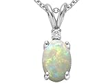 1.02 cttw 14k White Gold Genuine AAA Opal and Diamond Pendant in 14k White Gold Immediately