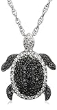 Discount Sterling Silver 1/4 cttw Black and White Diamond Turtle Pendant