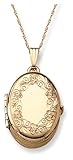 I really like this because the length of chain is longer and it can hold pictures of my grandchildren. Great design and well worth the price.Get more detail about 14k Yellow Gold Engraved Oval 4-Picture Locket, 20".