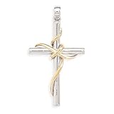 I love this beautiful, tastefully created cross. It has simple lines and the gold plate ribbon gives it an elegant look.Get more detail about 14 Karat Gold Plate and Rhodium Plated Sterling Silver Cross Pendant.