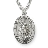 Lowest Price Sterling Silver 7/8" Oval Engraved St. Michael, Patron of Police Medal on 24" Chain