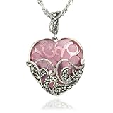*Kev's Wife*Get more detail about Sterling Silver Marcasite and Pink Glass Heart Pendant, 18".